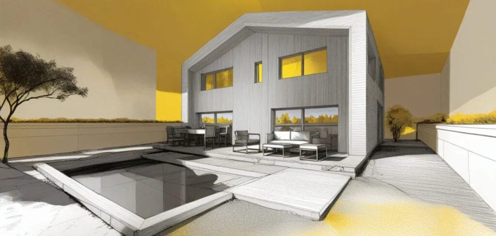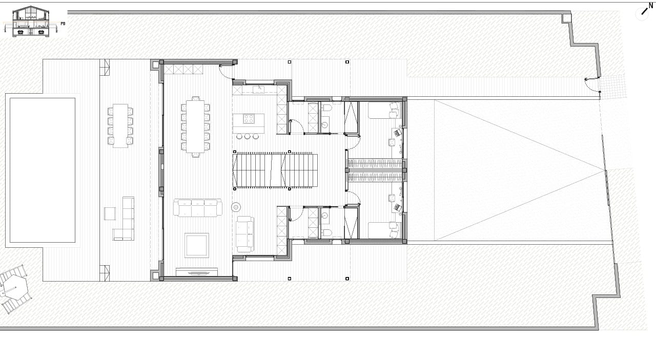 Una de las casas más grandes proyectadas por nuestro estudio. La volumetría recupera la idea de la casa en alzado que dibujan los niños pero busca la aplicación de materiales modernos y minimalistas para simplificar sus líneas.