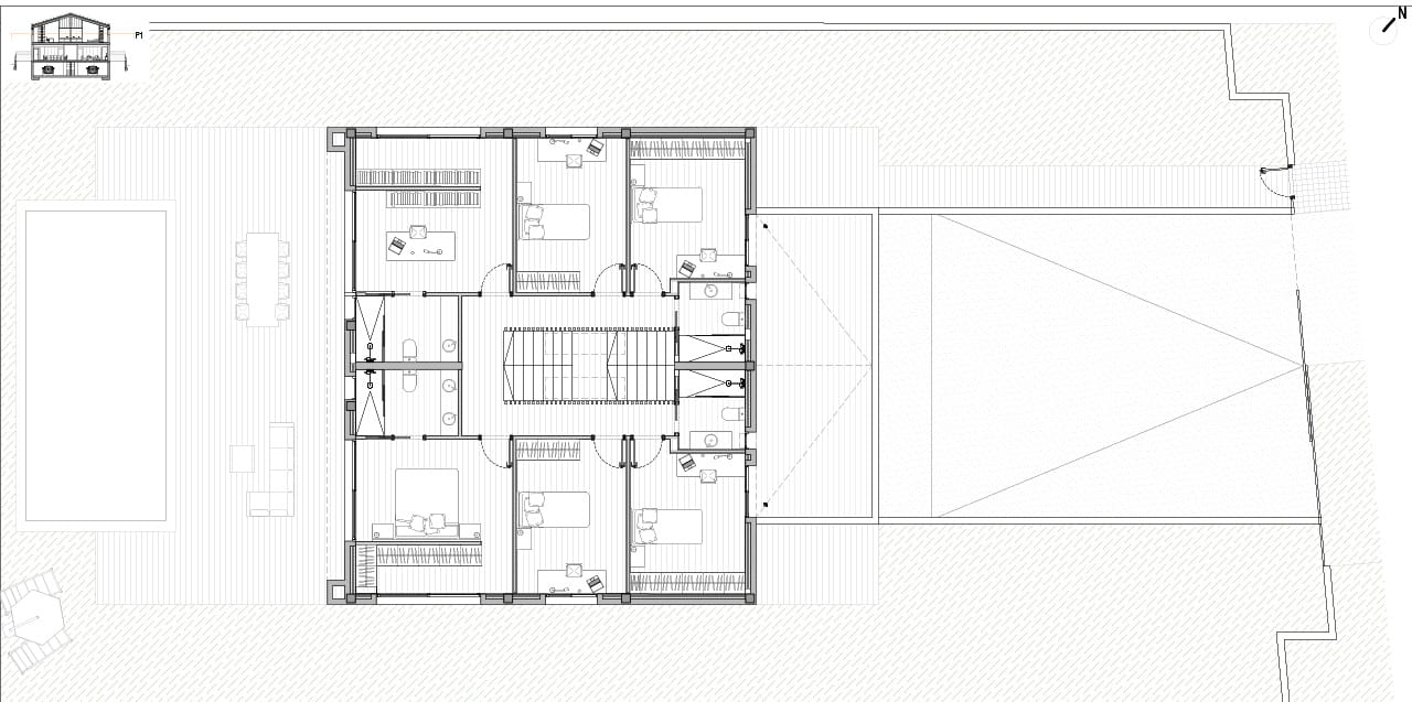 La casa es concebida como un volumen compacto que debe dar techo a una familia con muchos miembros.