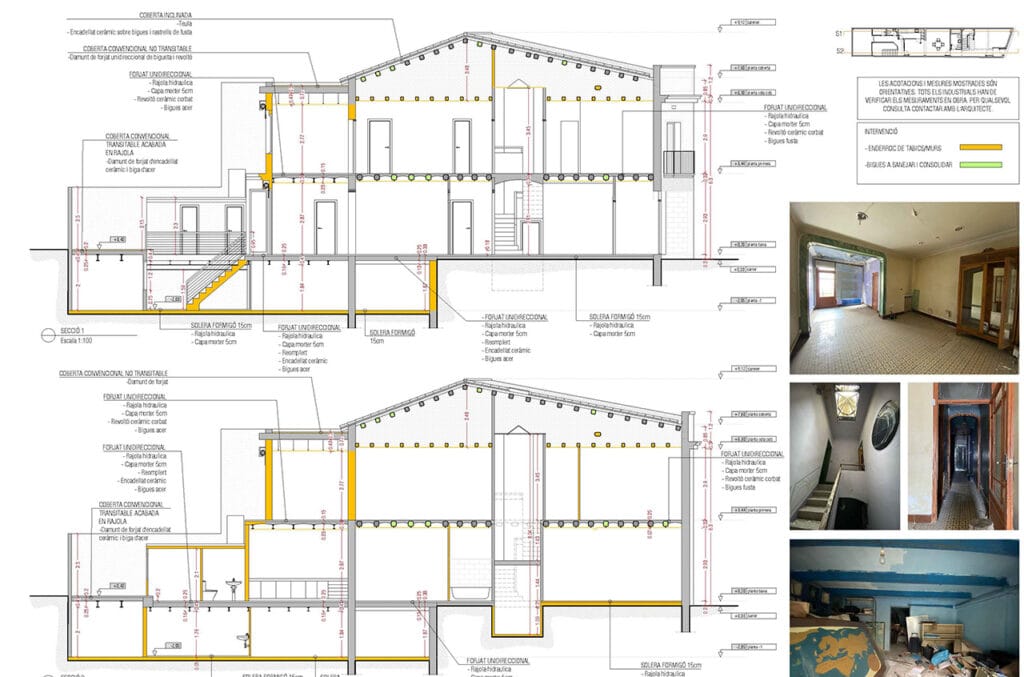 La intervención en sótano es de las más complejas donde rebajaremos el nivel de cota del suelo actual para convertir el espacio en una sala polivalente (habitable).